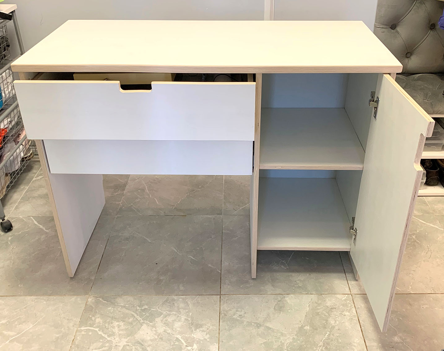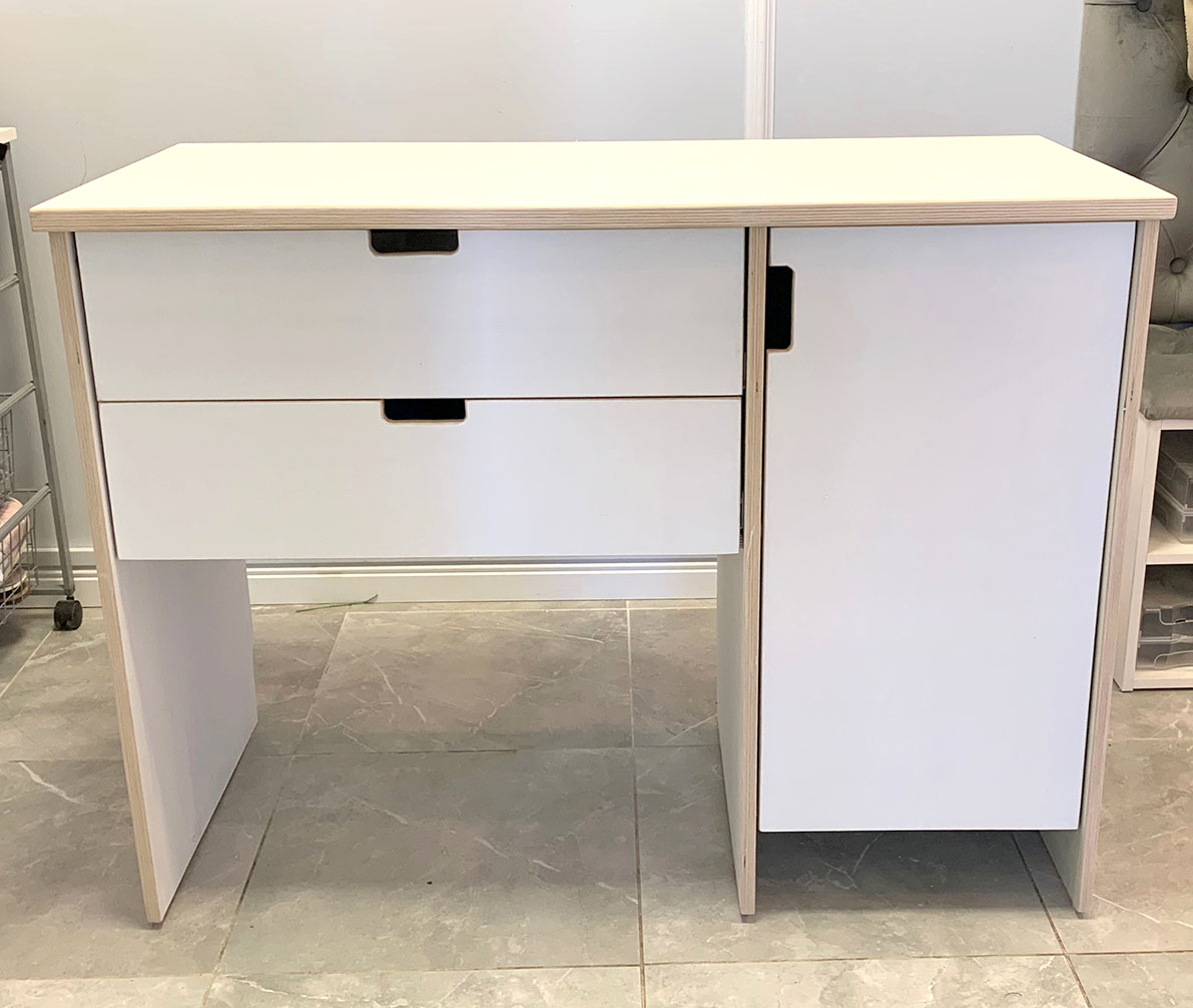 Письменный стол для прихожей. 110 на 75 на 55 см. Идеальное сочетание белых панелей и фанерных торцов.